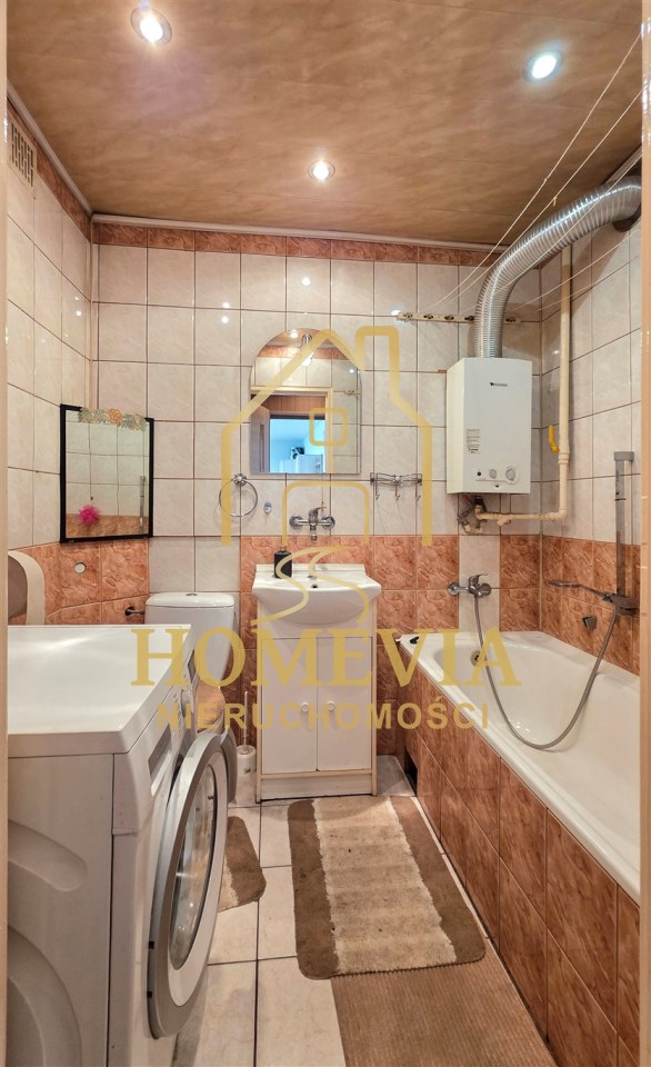 | Wyposażenie łazienki | lustro, pralka automatyczna, umywalka, wanna, WC |
