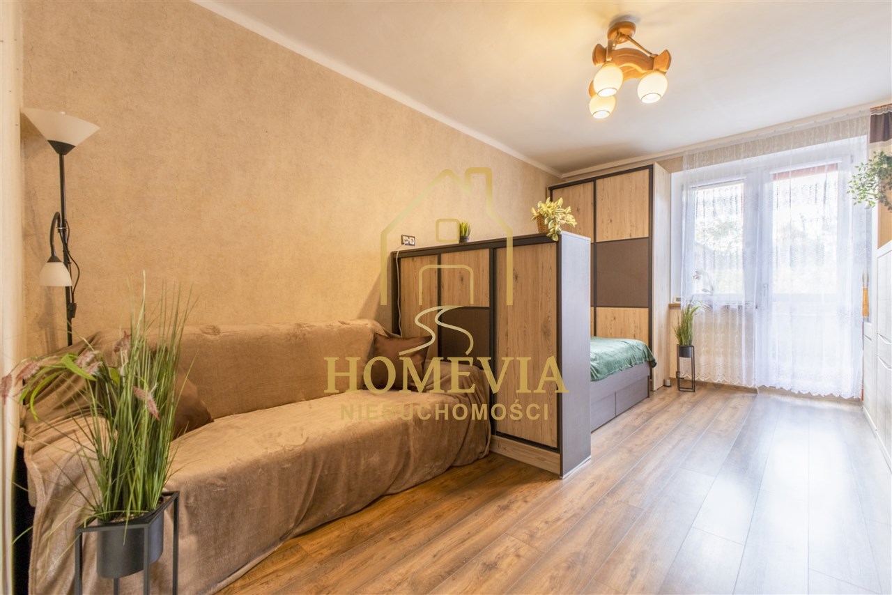 -Salon- przestronny z wydzieloną częścią sypialnianą oraz wyjściem na balkon