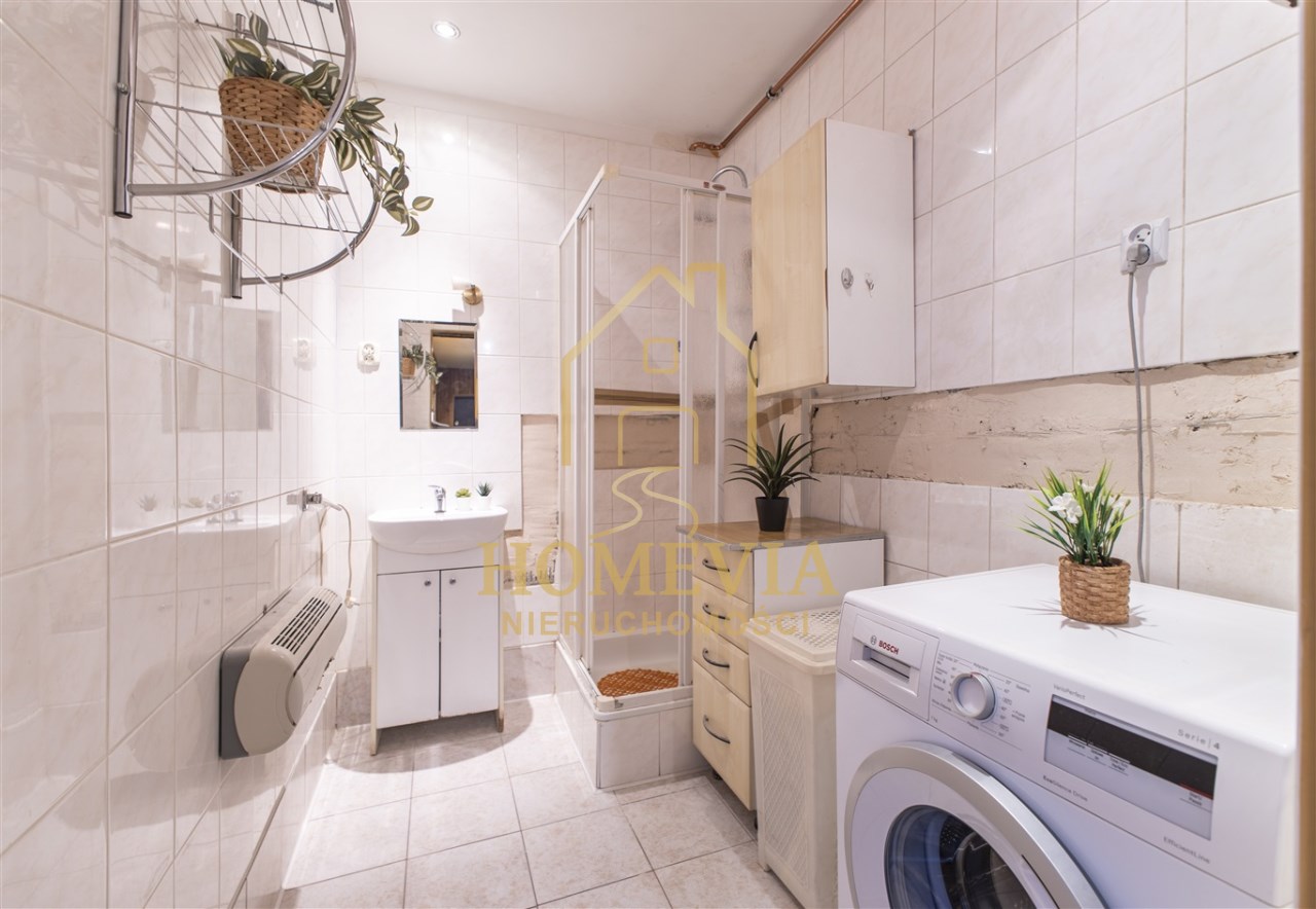 | Wyposażenie łazienki | kabina prysznicowa, lustro, pralka, umywalka |
