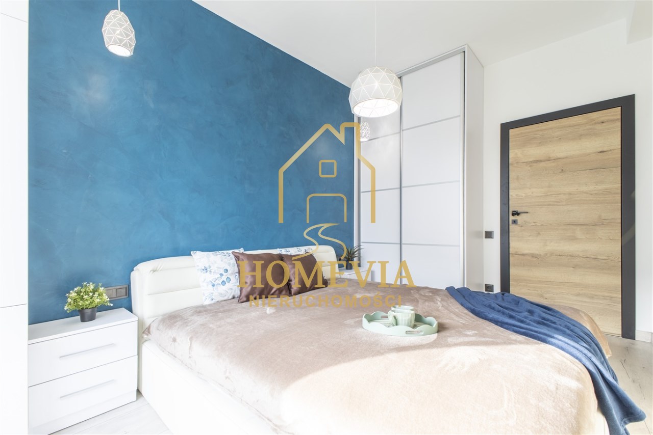 * Sypialnia: Pomieszczenie w pełni wykończone, wyposażone w duże łóżko podwójne, komplet mebli (szafa, szafka wisząca, komin oraz szafki nocne), ukryty sejf oraz TV Smart. Podłogi panel wysokiej klasy AC + ściany pokryte mikro cementem dekoracyjnym.