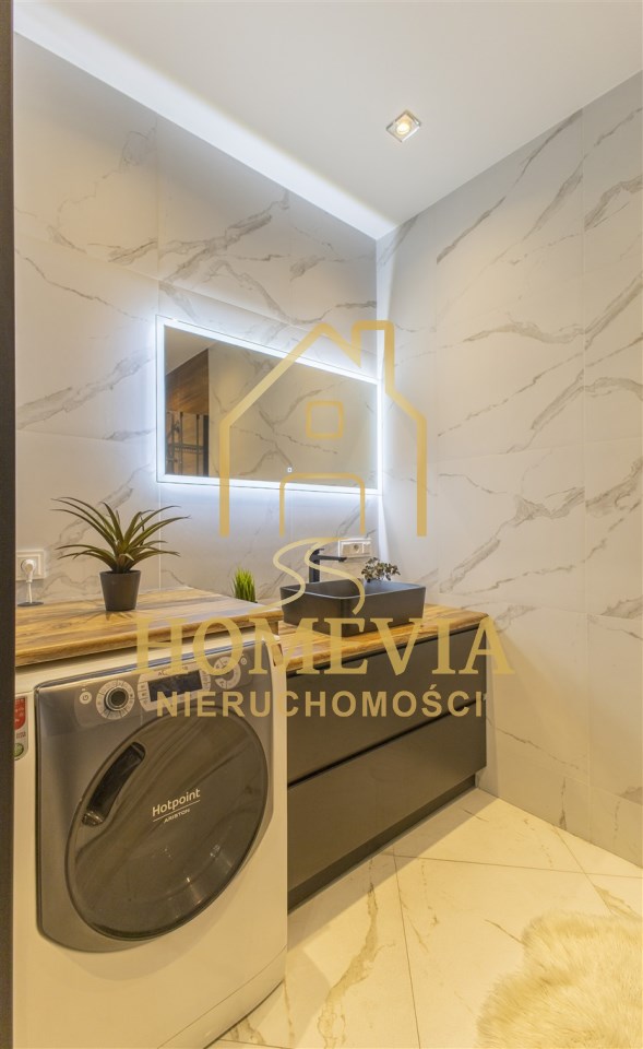 | Wyposażenie łazienki | kabina prysznicowa, lustro, pralka automatyczna, umywalka, WC |